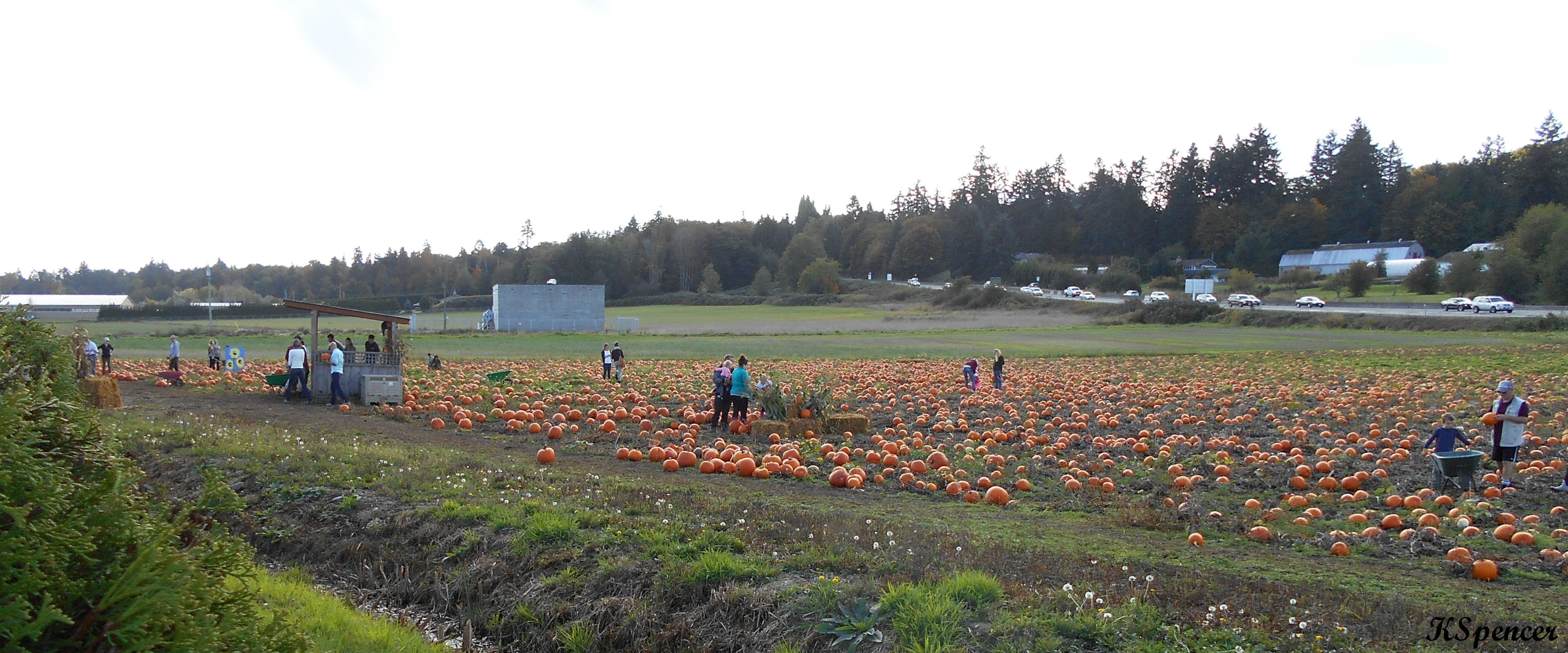 I don’t know which was more fun: walking among the pumpkins or watching the kids picking out pumpkins. They were all so serious about it! The little guy on the far right had been through two different sections of the grounds, picking up a pumpkin, putting it down, picking up another one, putting it down. He found one! It was so large, his grandmother said, “No.” So off he went again. I took the picture as this determined young man latched onto the wheelbarrow for the third time, and wiggled it along, looking for better stretch of land to choose from.