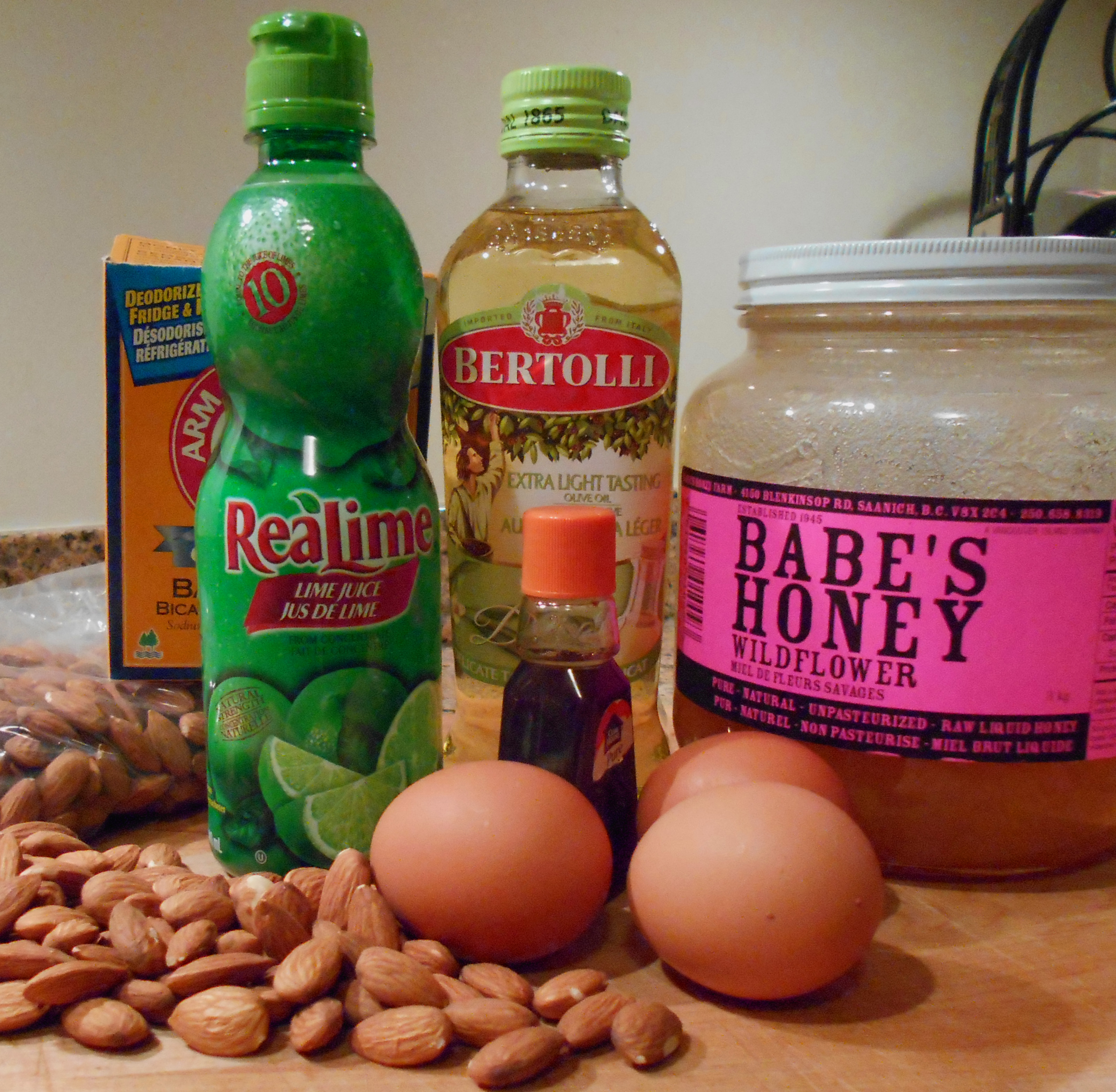 3. In a separate bowl, blend the eggs and honey thoroughly. Add the oil, lemon/lime juice and vanilla and finish blending.