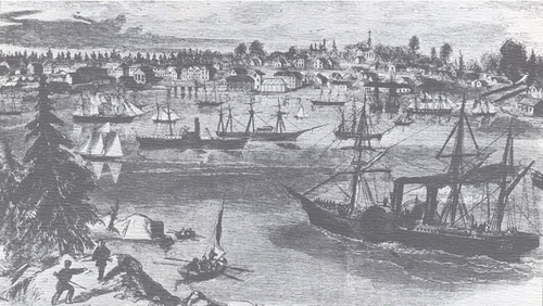 We have landed in Fort Victoria, Vancouver Island. Last night we were huddled into a dirty store house. John made us beds from boards that were lying around. I kept my spirits up til everyone was asleep and then quietly gave way with a flood of tears.